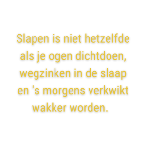 Al deze problemen kunnen met je slaap te maken hebben. Wie goed slaapt, heeft goede dagen. Wie goede dagen heeft, kent ook goede nachten. Het is een spiraal die al te vaak de neerwaartse kant opgaat, terwijl een beperkt aantal inzichten het tij kan keren.